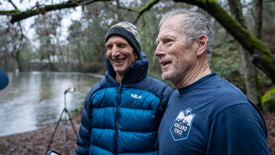 Sara Dinara, recently relocated to Ashland from Los Angeles, was motivated to take her first polar plunge because she wanted to “do things that scare me in 2025.” Jason Coffield, visiting from Oceanside, California, was at the reservoir to take his 367th consecutive daily plunge.