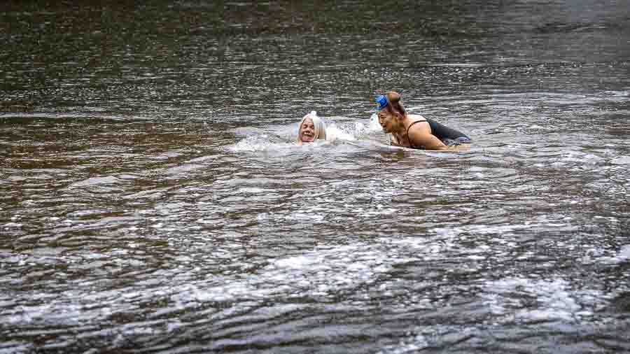 It was a bracing start to 2025 for a score of hardy souls braving the chilly waters of the Lithia Park swim reservoir