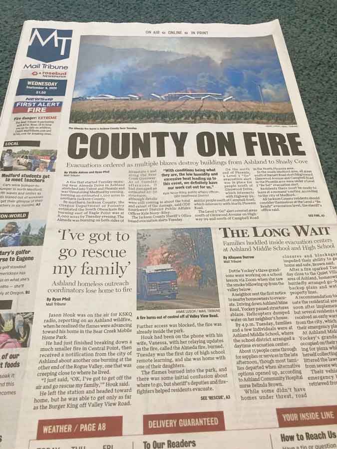 Then-Mail Tribune reporter Ryan Pfeil ended up one of the lucky ones whose homes did not burn — but he didn’t know that as he lived through it
