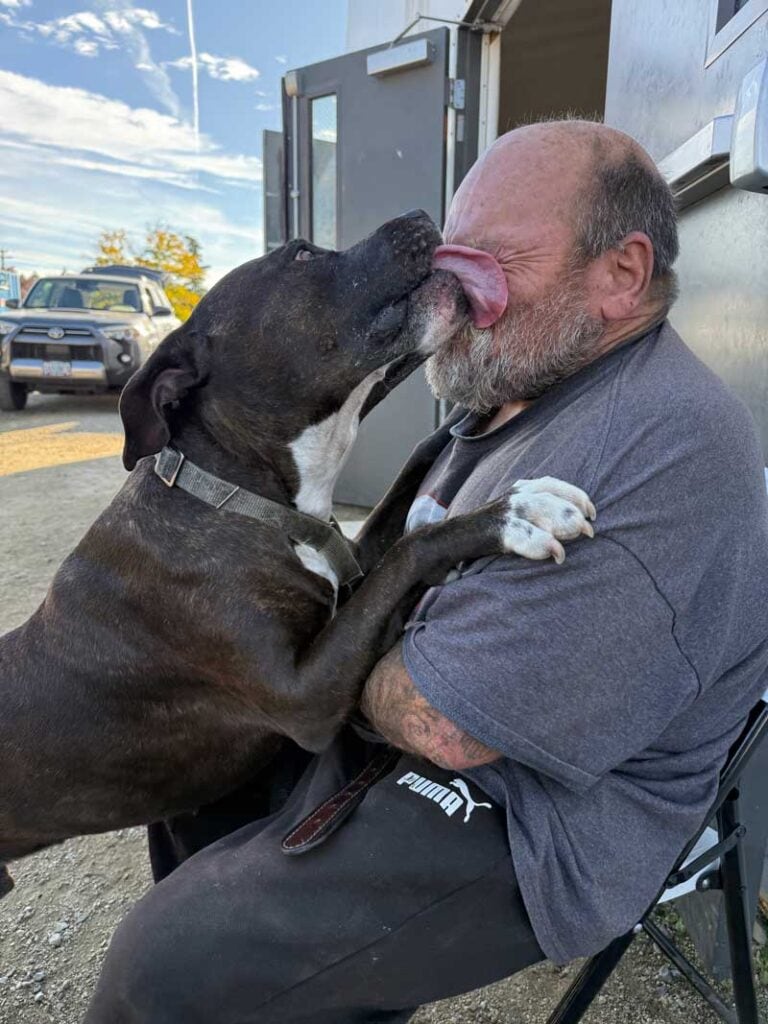 Like Sparkles, Boone is well known to the humans and other dogs at Rogue Retreat Crossings. “This dog’s got more friends than I do,” Terry says, looking down at Boone. “I love you so much,” he says. “You’re my reason.”