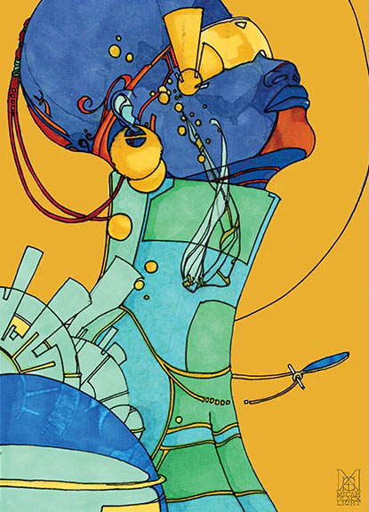 “Micah’s work creates whole worlds. I discovered Micah because of the posters he did for the Rogue World Music Festival,” Muller said.