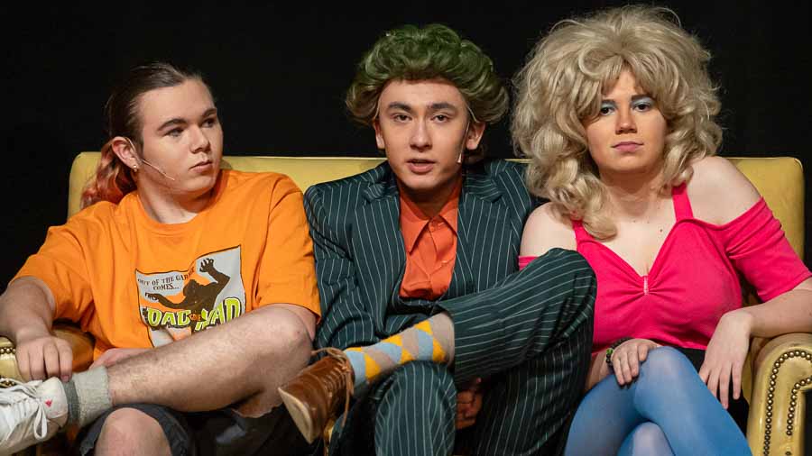Harry Wormwood is played by senior Liam Hokama (son of Oregon Shakespeare Festival Interim Executive Director Tyler Hokama) and Zinnia Wormwood is played by senior Alison Avery.