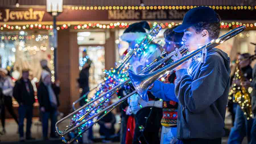 The atmosphere was abuzz with excitement and holiday cheer at the Festival of Light kick-off party featuring Christmas songs by the A&M Brass Quintet and games at 3 p.m. on a brisk afternoon before Santa’s Procession began at 5 p.m.