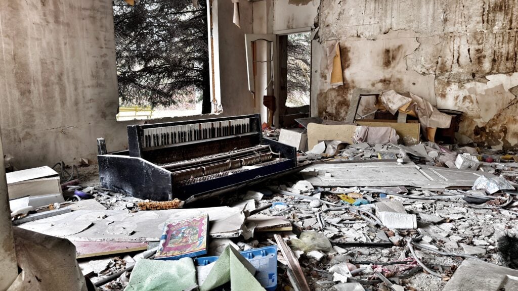 A 95-year-old woman Briscoe met said that she had survived Stalin, and that the ongoing war is more difficult. Near the woman’s Harkiv apartment, a kindergarten targeted by a missile had been destroyed.