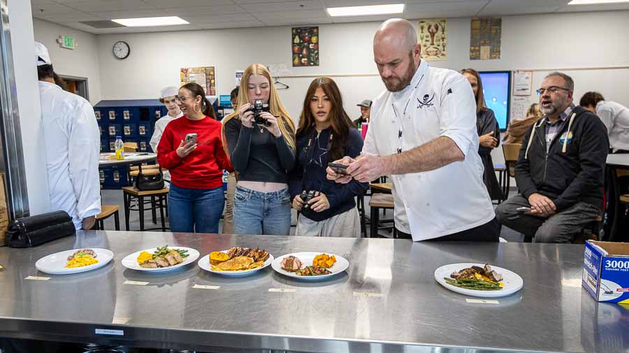 Teams gathered to make ingredients into fine cuisine judged on technique by Oregon Coast Culinary Institute judges. The competition, organized by Southern Oregon Education Service District (SOESD), was the first of its kind held at Phoenix High School’s culinary arts 1,000-square-feet kitchen.
