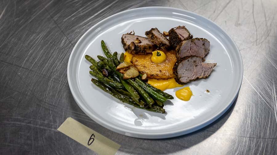 Quinn said his team incorporated herbs on the pork tenderloin, which they basted with butter and baked in the oven, and pan-fried the green beans, squash and almonds.