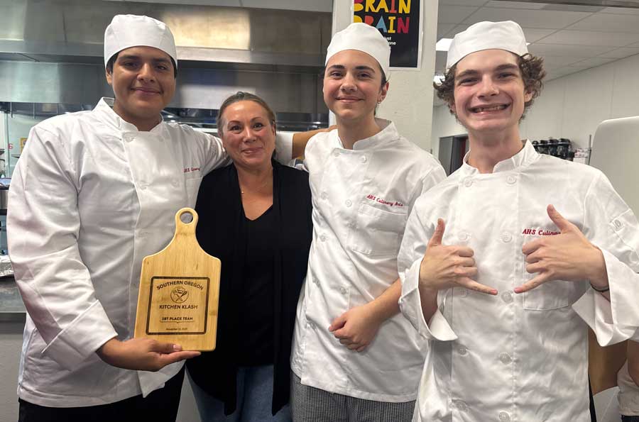 PHOENIX – Two teams from Ashland High School ruled the Southern Oregon Kitchen Klash over the weekend, earning first and second place awards for their creative rendition of pork tenderloin, butternut squash and green beans in the inaugural cooking competition.