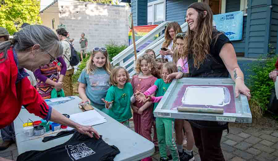 Ashland Hardware had kid-friendly games and face painting, as well as an expert who offered tips on water-saving drip irrigation. KS Wild, along with hosting music, had a screen printing station where people could have art printed on their shirts or tote bags.