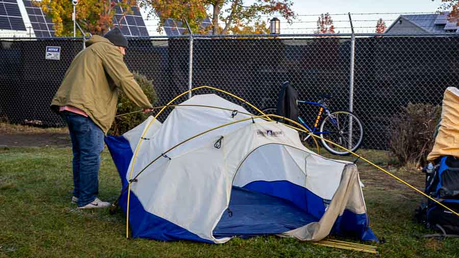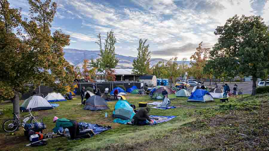 What it’s like to live on the city’s designated camping lawn: As dawn breaks, about 30 people soon to be ‘stranded’ rush to fold their shelters and clear the grass