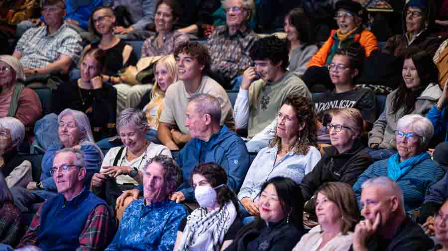 The evening began with a welcome and introduction by Oregon Shakespeare Festival Artistic Director Tim Bond, who spoke about theater as “an act of democracy” and “a sacred public space designed to bring people together across all backgrounds, to share stories that illuminate our collective humanity, promote possibilities of reconciliation, build compassion, amplify voices of our American mosaic and engender hope even in our darkest times.”