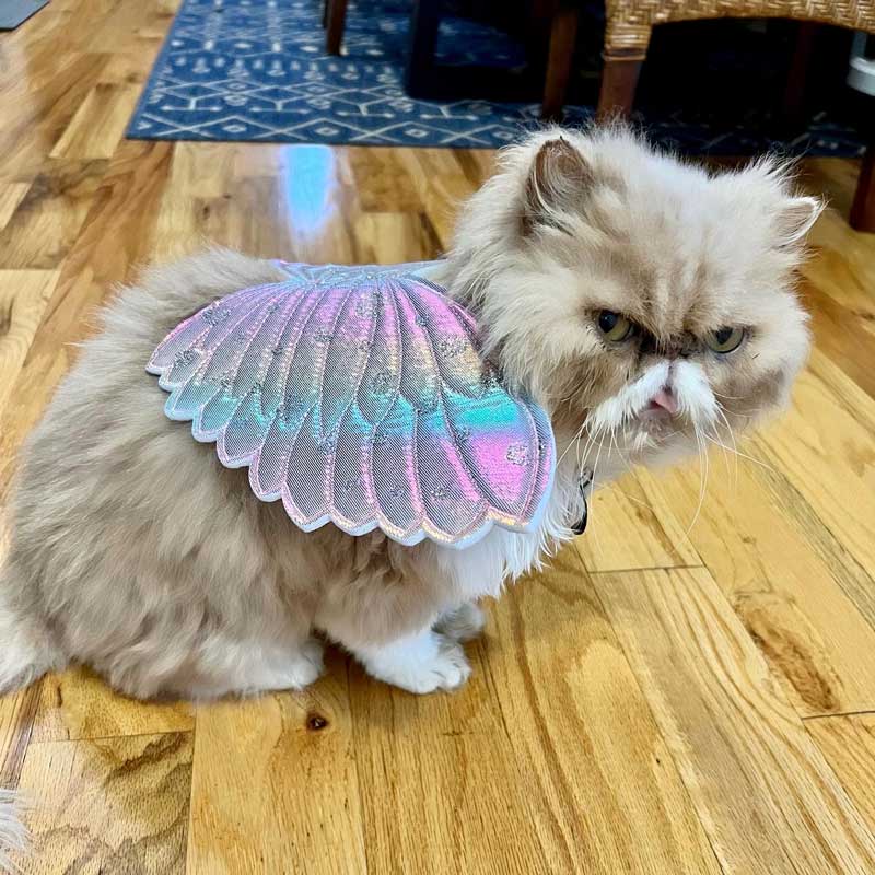 Some cats, however, are a little more open-minded about fashion, so if your cat does deign to wear a little something decorative, proceed with caution and respect their wishes. Don’t ever force them into a costume — and if you do slip on a tiara or a pair of sunglasses, get your photos quickly and free them as soon as possible. Costumes are adorable on cats, but only for a few moments (especially once they learn you’re taking blackmail photos). If they dislike what they’re wearing, remove it immediately; they could get injured trying to free themselves. And never dress up a cat who could escape while wearing anything other than an ID collar.