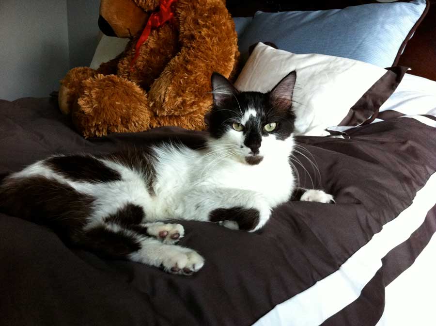 Keeping cats inside, or walking them with a harness and leash, makes it far less likely that they’ll go missing. But even this is no guarantee that they won’t get lost; any cat can get spooked and flee. My husband and I have witnessed two cats escaping from “cat-proof” harnesses while out on walks. We discovered firsthand it’s true they don’t go far — Harlan ran down the street, around the corner and sat waiting for us on the front porch. Teddy’s escape was far scarier — he ran and hid under a neighbor’s deck, three houses away, and it took us a while to find him.