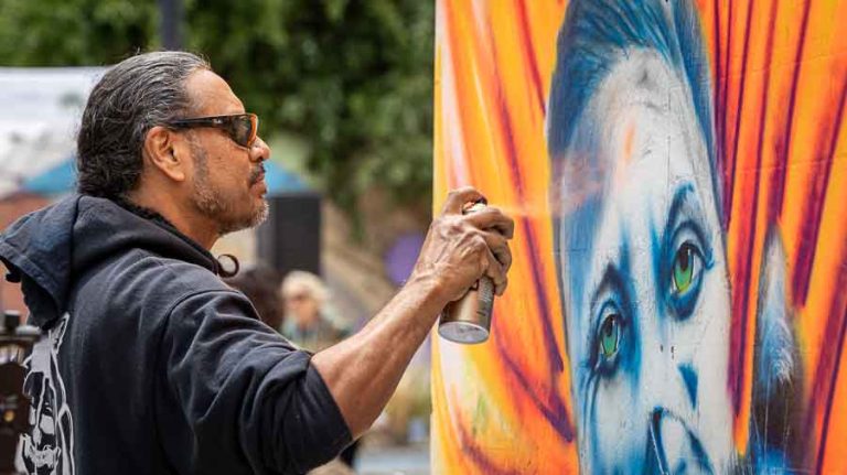 The second annual Mural Fest took place June 21 and 22 at ScienceWorks Hands-On Museum in Ashland. Produced by The Brothers Grime, a Southern Oregon trio, the event brought together 17 artists from across the Rogue Valley to create 8-foot by 8-foot murals in the ScienceWorks plaza.