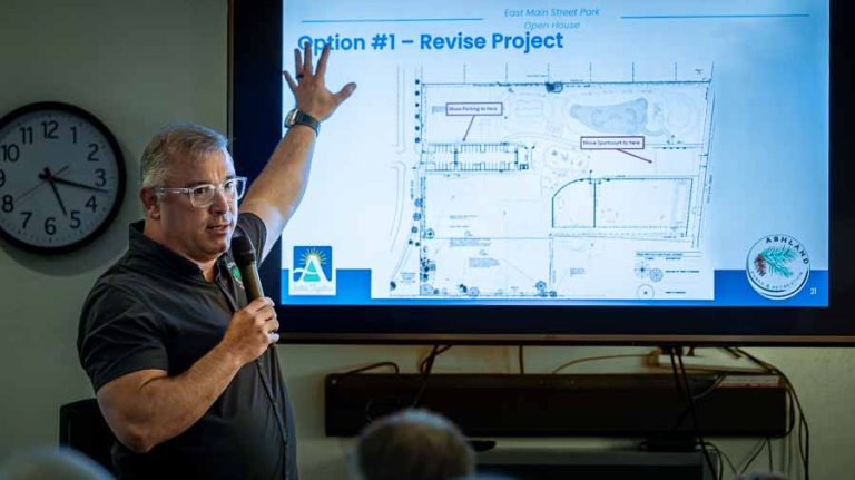 The conversation about the troubled East Main Park project — now $500,000 over budget — continued on Monday, Aug. 18, during the Ashland City Council study session.