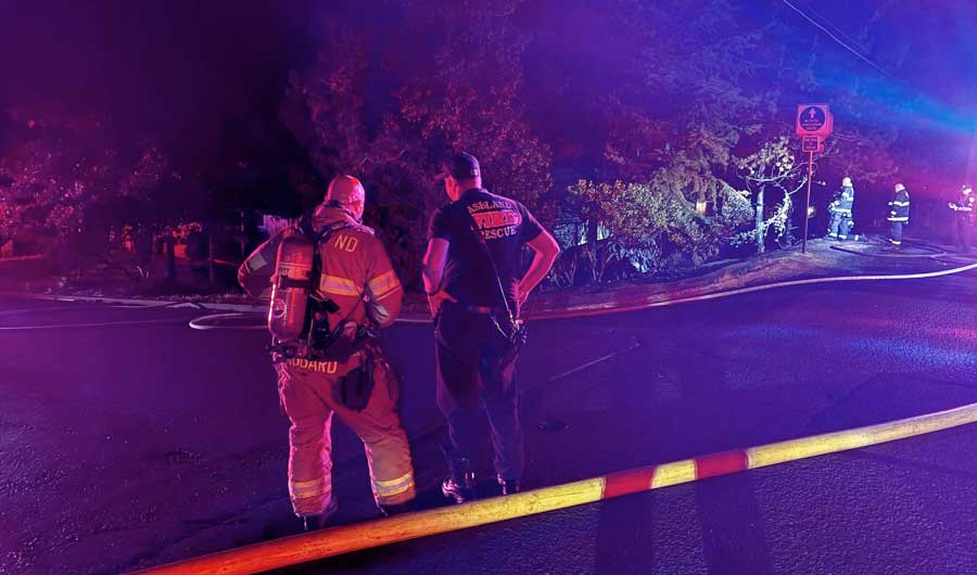 The Facebook post noted that the occupants of the home that caught fire and the driver were unharmed. According to the post, Jackson County Fire District 5 and the Ashland Police Department helped put the fire out and evacuate neighboring homes. The Talent Police Department also assisted with incident, according to an APD Facebook post.