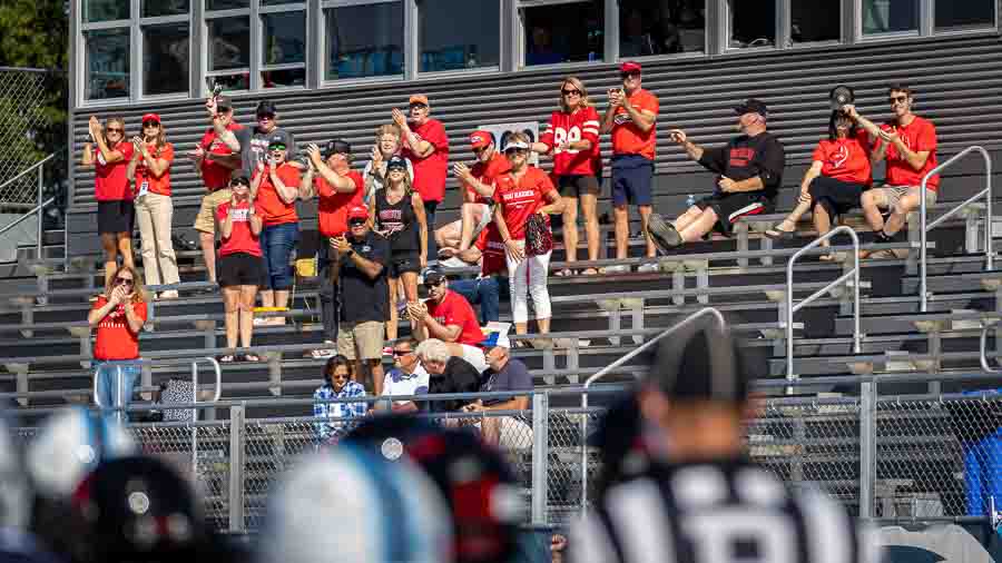 About 20 Raider fans cheered at Dakota State University after an SOU touchdown Saturday. Ashland.news photo by Bob Palermini