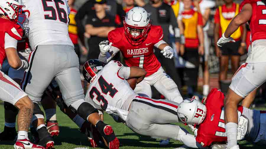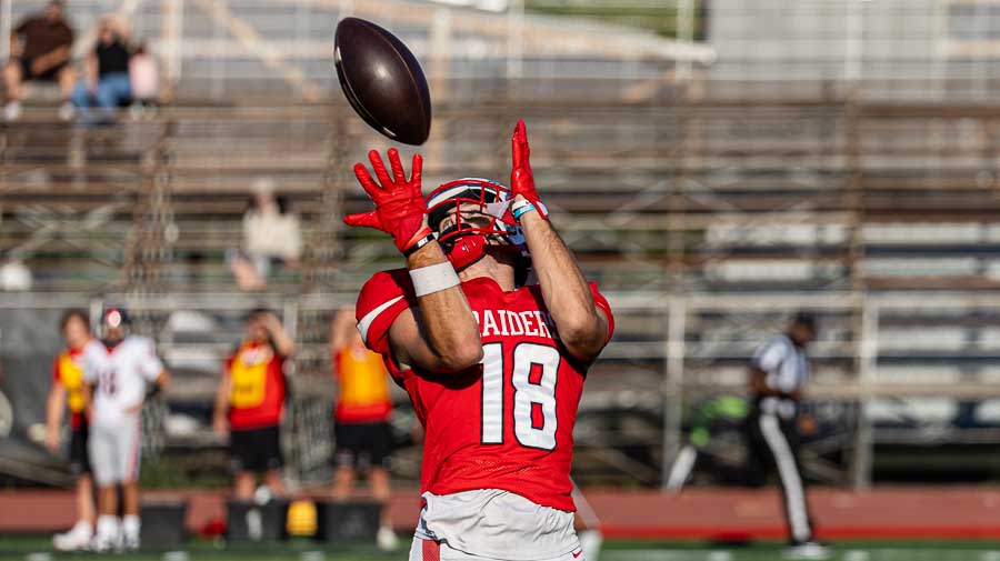 The margin of victory was the Raiders’ widest in a shutout since 2003. Despite kicking off to start the contest, they scored two touchdowns within the first five minutes – a 60-yard strike from Dom Montiel to Brandon Barthel on their first play from scrimmage, and the 40th of Gunner Yates’ career.
