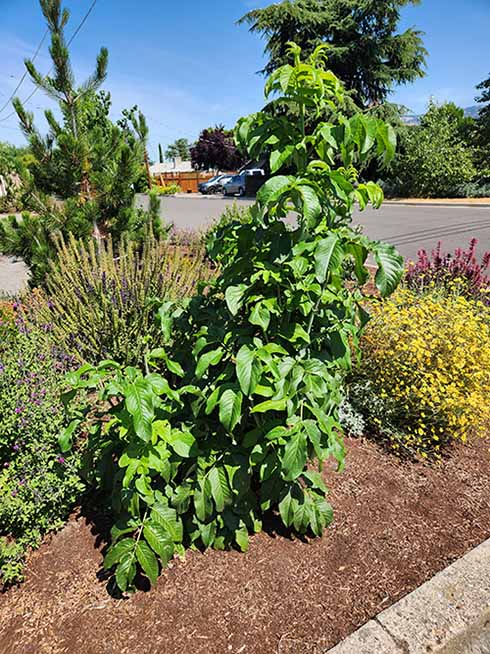 Those seeking out the July 2025 Garden of the Month are encouraged to drive a little further down Glendower to the trailhead leading to the Ashland Pond, where an extensive restoration project took place following the Almeda Fire in 2020. Native and riparian plant material was contributed by many local organizations and planted by Lomakatsi’s crew and inter-tribal workforce through a contract with the Freshwater Trust.