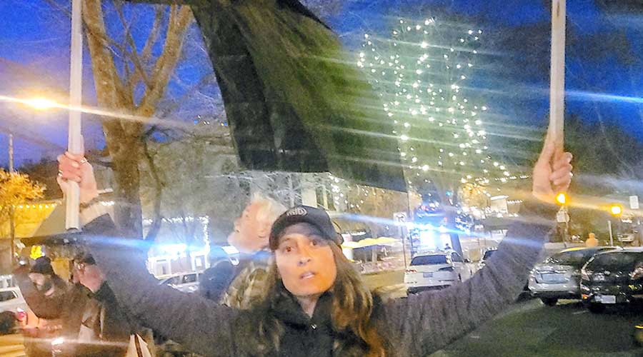 Victoria Lawton-Díez was among an estimated 500 people who gathered Sunday, Jan. 25, on Ashland Plaza to mourn Alex Pretti, the Minnesota man gunned down by federal immigration agents Saturday. Art Van Kraft photo for Ashland.news