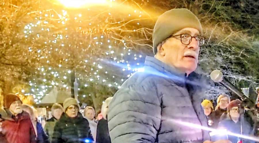 State Sen. Jeff Golden speaks at a Sunday, Jan. 25, candlelight vigil for Alex Pretti, the Minnesota man and intensive care nurse shot dead by federal immigration agents Saturday in Minneapolis. Roughly 500 attended the vigil at the Ashland Plaza. Art Van Kraft photo for Ashland.news