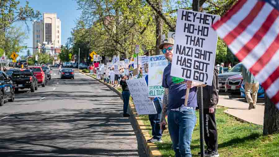 Former Mayor Julie Akins said she was looking for any local protests organized by the 50501 movement. They are a national group dedicated to promoting “50 protest, 50 states, 1 movement.” When nothing showed up for Ashland in April, Akins decided to start a local protest herself. With the sanction of 50501, Akins said she went ahead with the arrangements.