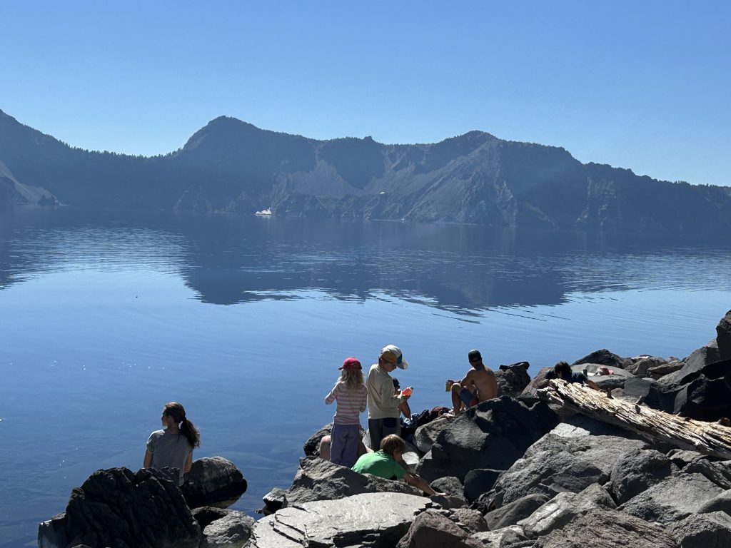 Visitors gather at lakeside to enjoy up-close views of Crater Lake. Lee Juillerat photo