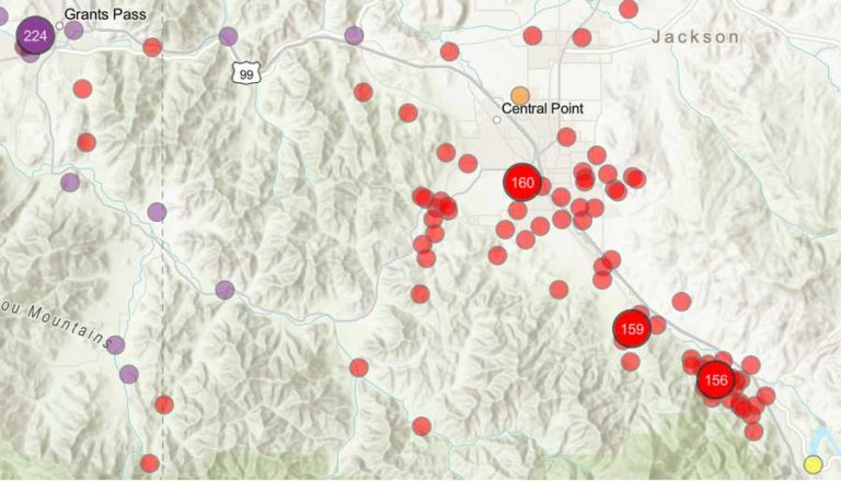 The Moon Complex of fires in Curry and Coos counties is sending smoke into the Rogue Valley, prompting a warning from Jackson County health officials about dangerous air quality.