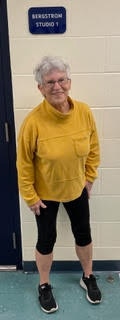 She has a devoted following, averaging 60 students per class, plus a dozen or so on Zoom from as far away as Spain. Studio 2 has been re-named Bergstrom Studio 2.