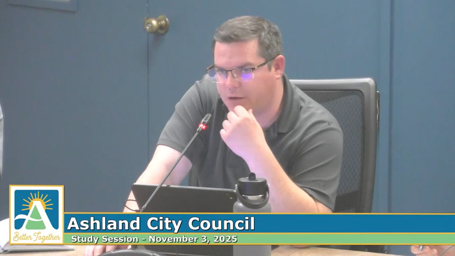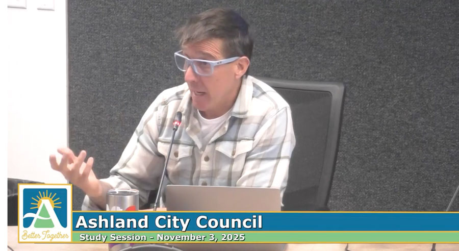 Eric Hansen speaks at the Ashland City Council study session Monday. Screen capture from RVTV video