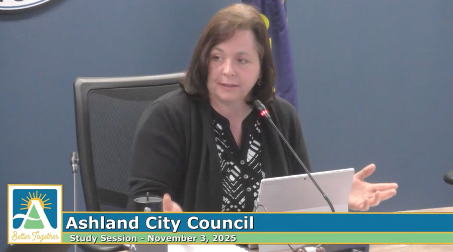 Mayor Tonya Graham speaks at the Ashland City Council study session Monday. Screen capture from RVTV video
