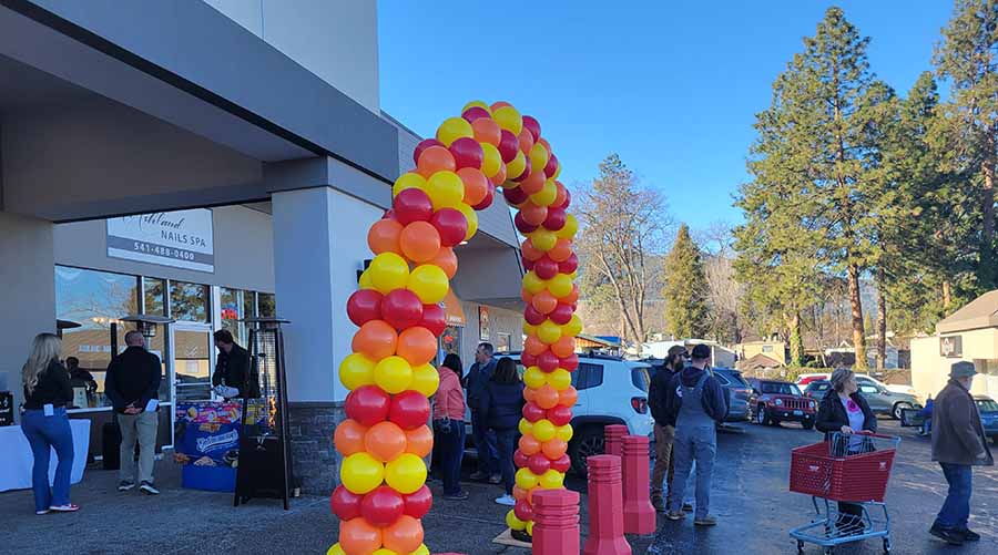 A ribbon-cutting hosted by the Ashland Chamber of Commerce drew about 300 people, according to store owner Jonathan Lawton, who, along with his wife, Jennifer, own a Grocery Outlet in Medford.