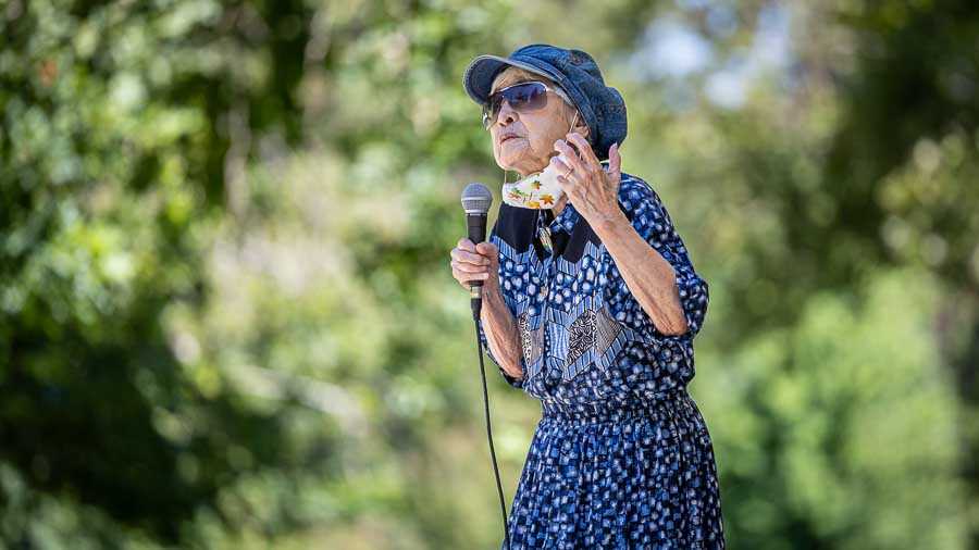 Dr. Hideko Tamura-Snider gave a spirited message of optimism and hope for the future of the Pacific Rim Bowl and its participants, organizers, and supporters on Tuesday, July 22, during the third PRB Peace Ceremony at Lithia Park’s Butler Bandshell.