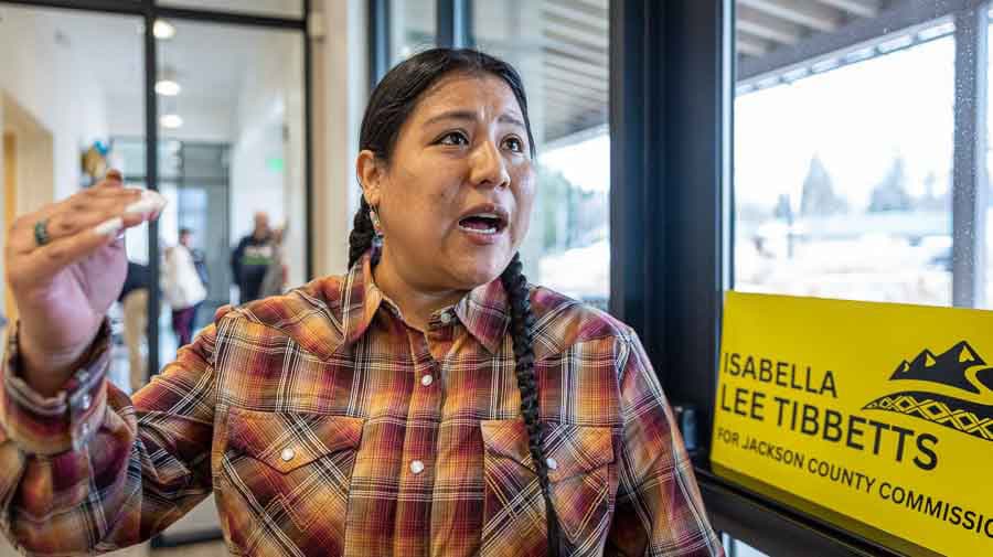 Tibbetts, 34, a development associate with Southern Oregon Climate Action Now, told the audience that she is a millennial mother and a woman of color who was raised in the Rogue Valley, and that she is making a bid for county office on the message that local government must look more like the people it serves and act more decisively on housing, disaster preparedness, and transparency.