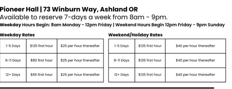 Parks & Recreation Commission recommends new rental rates for Pioneer Hall and Ashland Community Center (Aug. 14, 2025)
