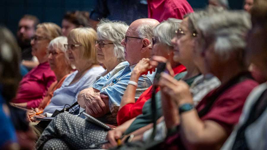 An estimated 120 to 150 attendees, many members of Osher Lifelong Learning Institute (OLLI), trickled into Southern Oregon University’s Recital Hall on Wednesday morning to learn more about the Rogue Valley Manor’s parent company Pacific Retirement Services and its pitch to operate a senior living housing development proposed for the Ashland campus.