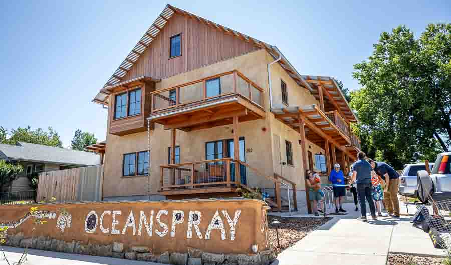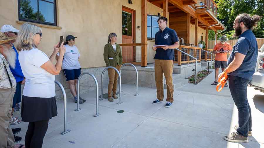 Southern Oregon Climate Action Now launched its premier Green Business Recognition ceremony on Thursday, June 12, with a “green ribbon cutting” at a four-plex built out of straw bales on Wightman Street in Ashland.