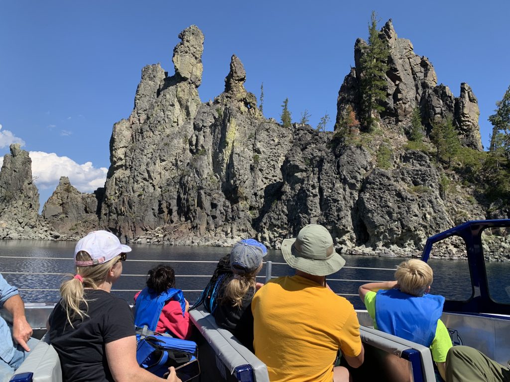 The Standard Lake Cruise two-hour cruise travels the perimeter of the lake and offers up-close views of Wizard Island, Phantom Ship, and other natural formations of Crater Lake’s caldera. A ranger provides information about the natural beauty of Crater Lake and the cliffs that were formed thousands of years ago when Mount Mazama collapsed and the lake was created.