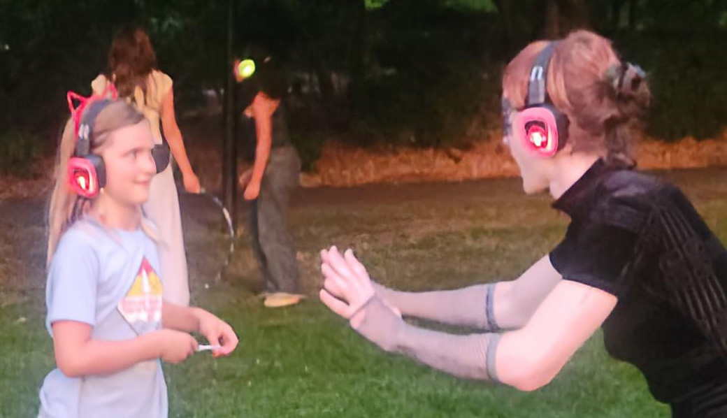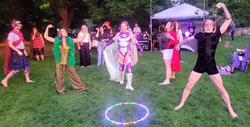 That challenge has been made by a new group of Ashland artists and performers, Artnow, a nonprofit. On Aug. 1, Artnow hosted a Silent Disco at Lithia Park. Part of the group’s Superhero Bootcamp is intended to give people an “immersive fitness quest where creativity meets capes and dancing becomes a superpower.”