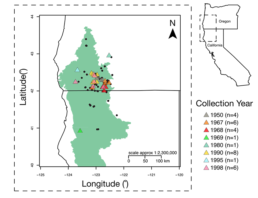 Koch spent time with Thorp walking the slopes of Mount Ashland in search of the bee. “Sadly, I did not see Franklin,” he said. “I was a few years too late.” Koch credits Thorp for making the genomic research possible.  “It was because of (Robbin’s) collections in the museum that we were able to conduct this research.”
