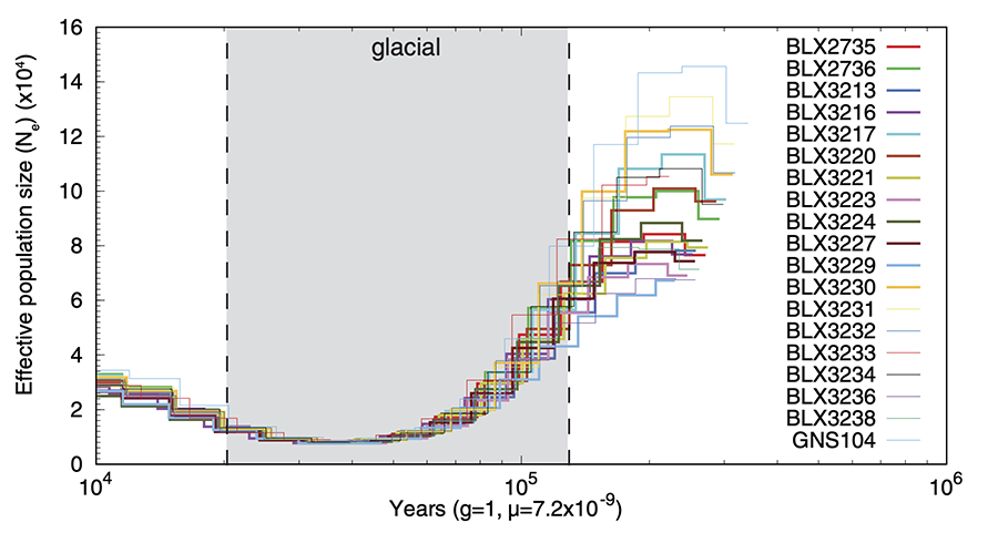 Exhibit 2 diagrams the population of the species based on 19 specimens looking back past the last interglacial period in which the populated suffered greatly “and never fully bounced back to previous levels,” said Koch. “Extinction is a long story. It did not happen overnight.”