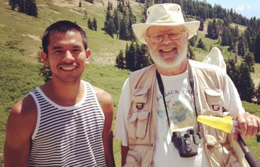 Jonathon Koch (left) and Robbin Thorp on Mount Ashland in 2012. Thorp is largely credited with making research of the Franklin bumble bee possible due to his early studies of the bee. Courtesy photo