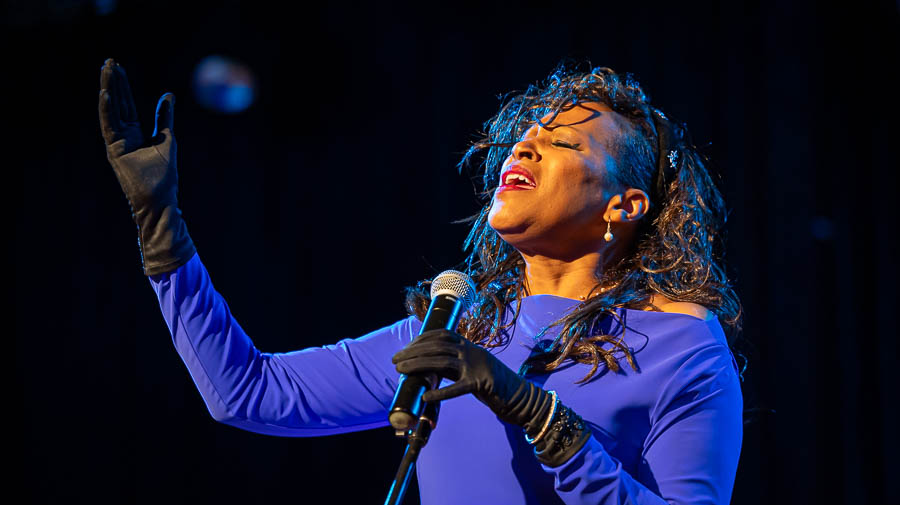 Nina Davis, scheduled to perform at the 2026 MLK Day celebration, sings the Black National Anthem, “Lift Every Voice and Sing,” at last year’s event. Ashland.news photo by Bob Palermini