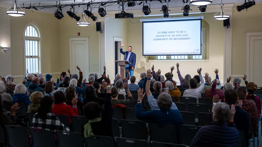 At Carpenter Hall on Sunday, dozens of residents gathered to consider the nature of community and what it might look like to commit to fostering a sense of belonging in Ashland. Hosted by All.Together.Now, the “Community Conversation” was billed as a follow-up to the well-attended lecture by john a. powell held in October.