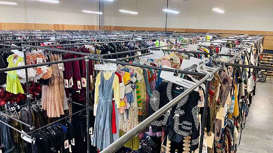 The program’s current home dates to 2013, when the Talent production building opened and rentals relocated from a smaller Ashland warehouse. Since then, the operation has matured into a logistical and artistic anchor — one that keeps garments in circulation rather than just in storage. Through repeated reuse, the costumes are routinely laundered, repaired and maintained over years of service.