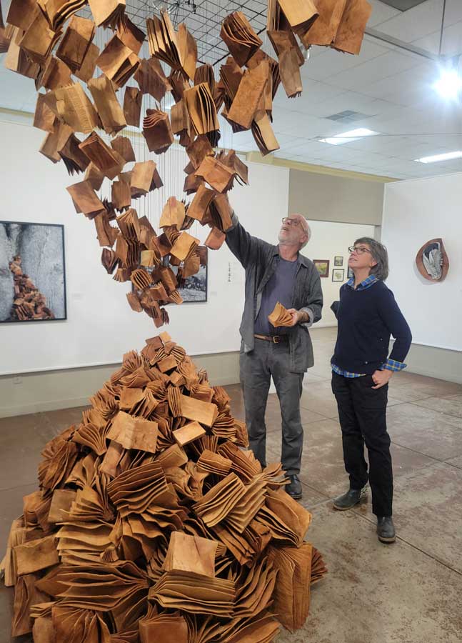 Two Ashland area sculptors have created “a unique and dynamic” exhibit, according to the one of the visitors at an artists’ talk at the Rogue Gallery & Art Center in Medford Saturday, Oct. 25.